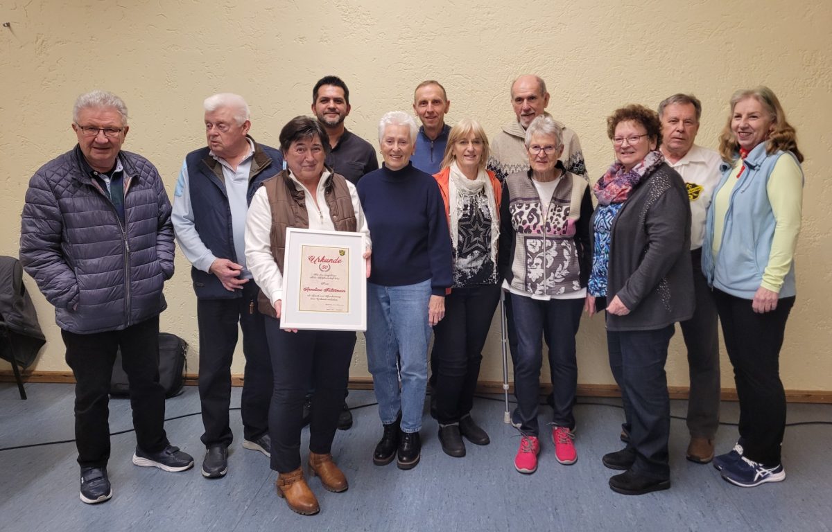 25 Jahre Mitglied beim FC sind Helmut Burglechner, Johann Schuster und Gökhan Tam. Seit 40 Jahren sind Gertrud Kreutzer, Elisabeth Manke und Klaus Schmidt und zum Dank für 50 Jahre Treue zum Verein wurde Anneliese Faltermeier mit einer eindrucksvollen Urkunde ganz besonders geehrt.