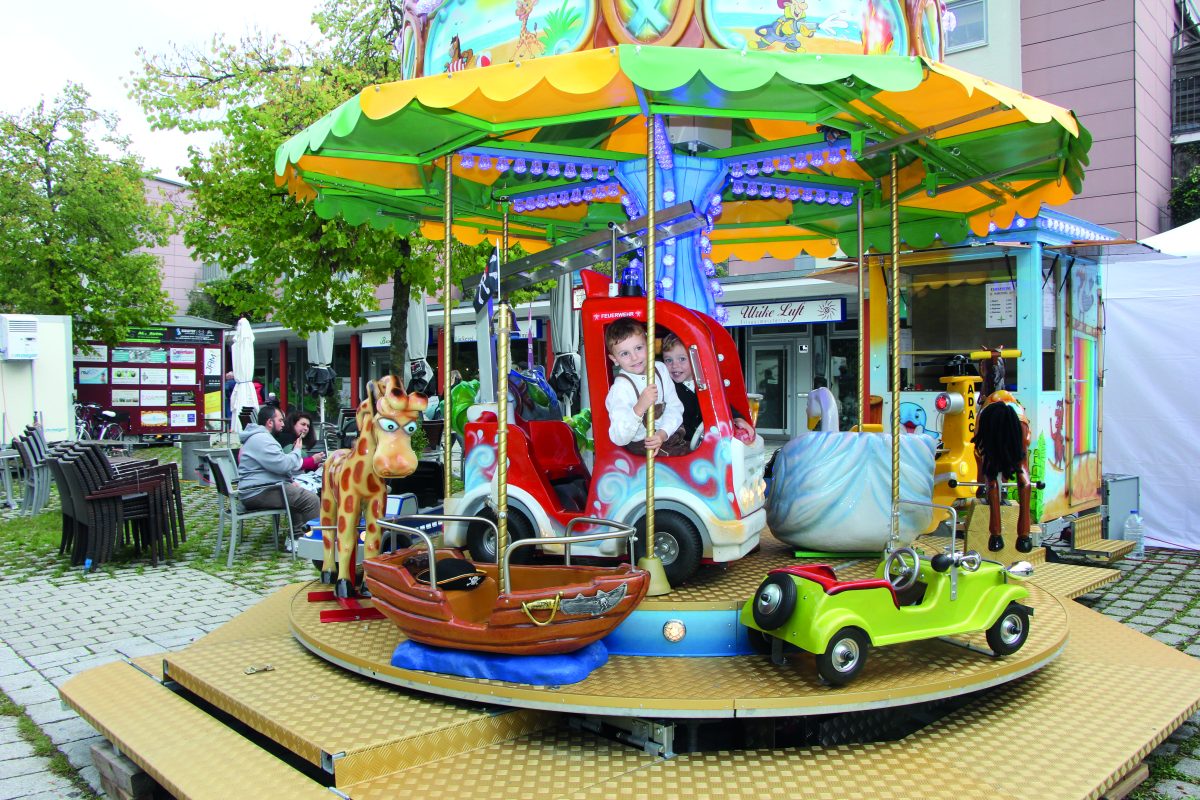Am Fair-Trade-Stand konnte man testen, wie gut man die Neufahrner Skyline kennt und was man persönlich unter „fair sein“ versteht. Verspürte man Hunger oder Durst, dann hatte man die Qual der Wahl, denn dann musste man sich entscheiden zwischen internationalen Gerichten und Wurstsemmeln, zwischen herzhaft und süß. Viele Kinder und manch ein Erwachsener wollten gern mal die Welt von oben sehen und eine lange Schlange bildete sich vor der Bungee-Anlage. Die Gemeindebücherei hatte ihre Türen für den Bücherflohmarkt geöffnet. Für die Kleinen gab es ein Kinderprogramm mit Spielen und Basteln und wer von den jüngsten Besuchern gerne mal im Feuerwehr- oder im Polizeiauto mitfahren oder Kapitän auf hoher See sein wollte, der war im Kinderkarussell an der richtigen Stelle.