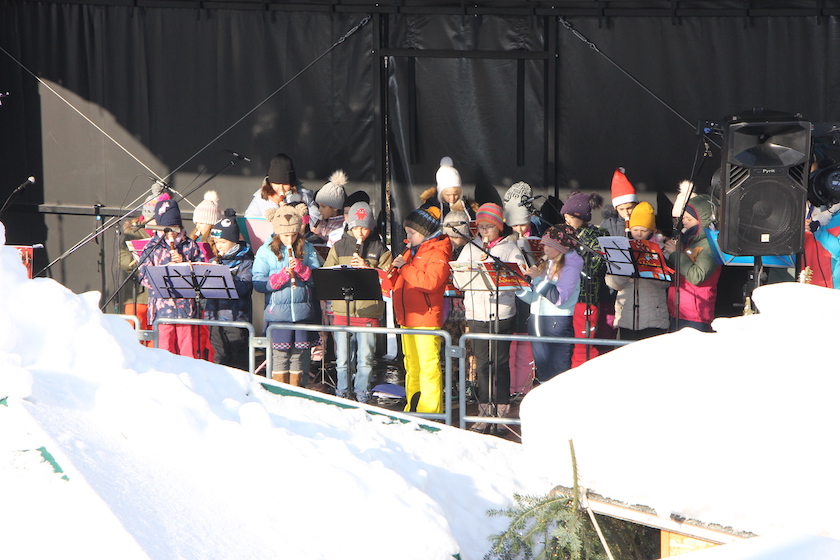 Wer kann sich an Zeiten erinnern, als die Eltern ihre Kinder auf dem Schlitten zum Christkindlmarkt zogen? Wann jemals stapften die Besucherinnen und Besucher durch fast kniehohen Schnee, um auf dem Marktplatz zu bummeln und bei Schneegestöber der weihnachtlichen Musik auf dem Marktplatz zu lauschen? Besser hätte der Termin nicht gewählt werden können, am 2. und 3. Dezember wurde der Neufahrner Christkindlmarkt zum Wintermärchen. „Das ist der garantiert weißeste Christkindlmarkt, den wir je hatten“ stellte Bürgermeister Franz Heilmeier bei der offiziellen Eröffnung am Samstagnachmittag fest. Die Bläsergruppe des Gymnasiums und eine Gruppe der Musikschule Neufahrn Hallbergmoos umrahmten die Eröffnung mit weihnachtlicher Musik.