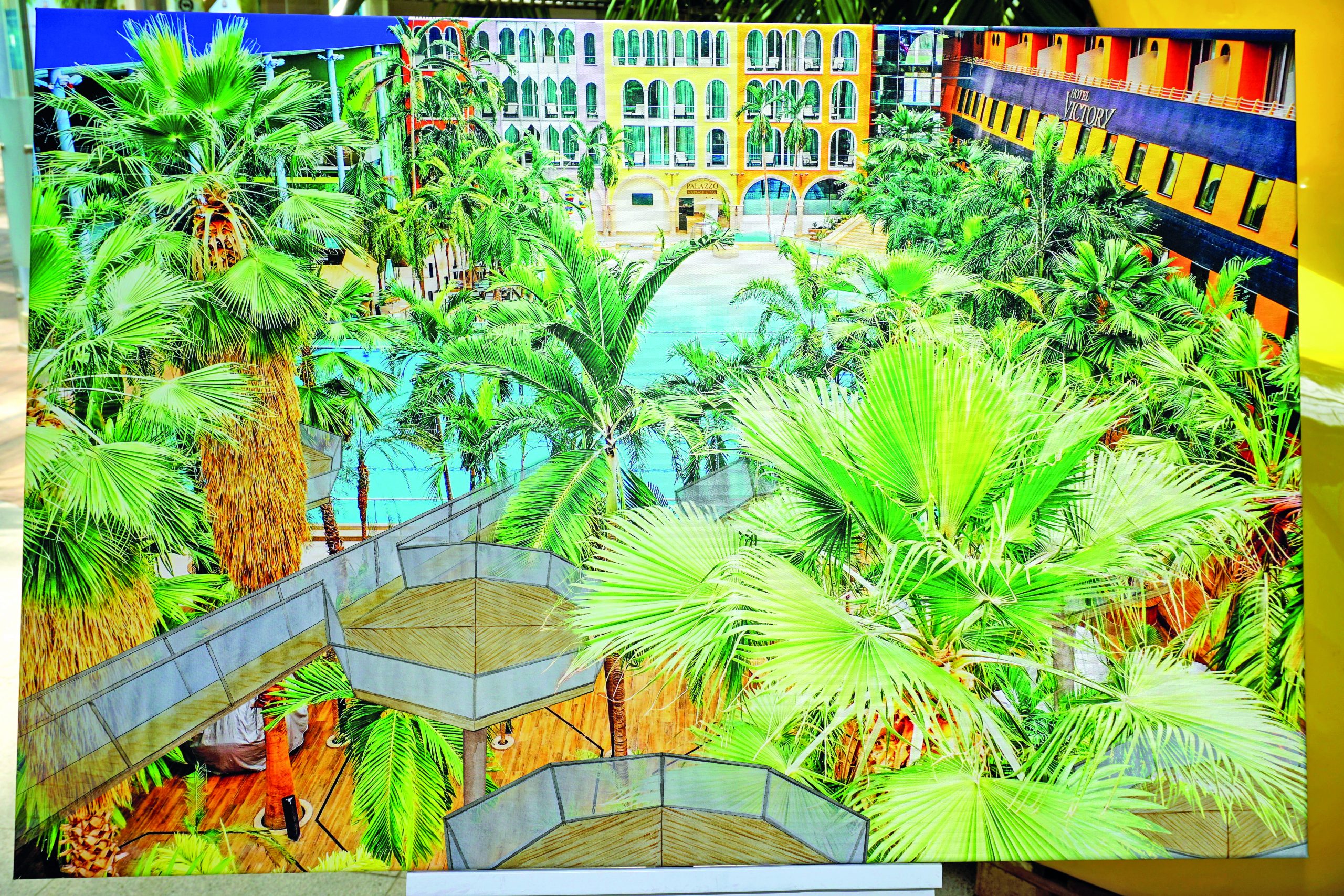 Zukünftig Blick auf Palmkronenhöhe auf das Wellenbad und Hotel Victory.