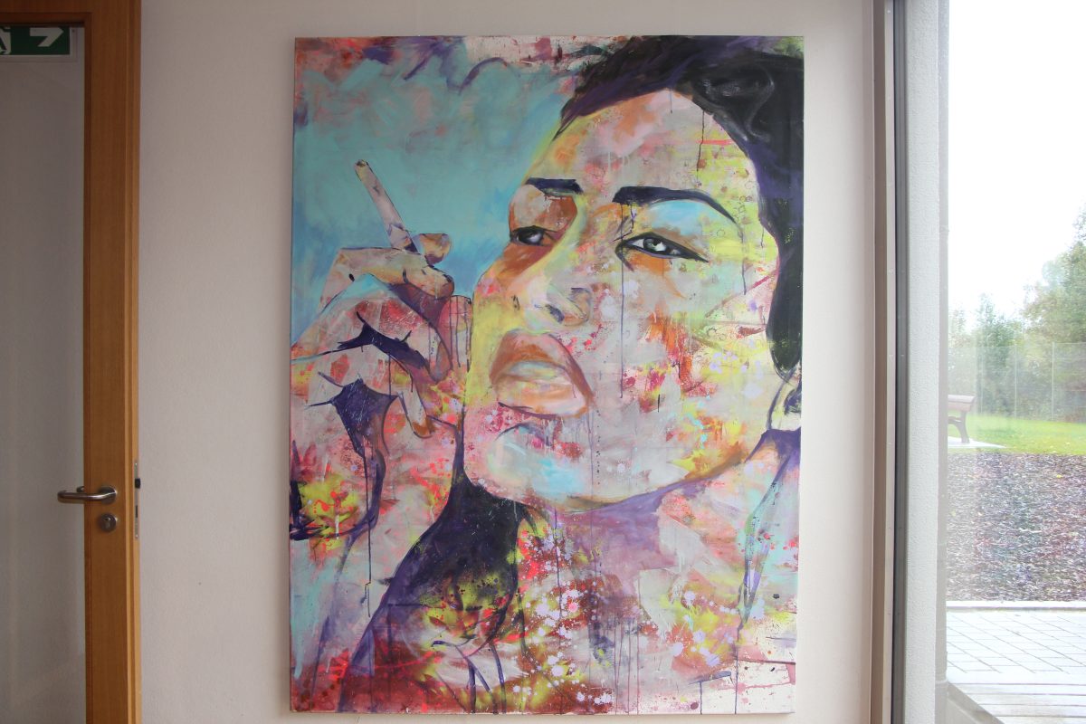 Umrahmt wurde die Jubiläumsfeier von einer Vernissage. Miriam DaSilva zeigte unter dem Titel „Mindscapes – Masken & Wahrheit“ zehn eindrucksvolle großformatige Acrylgemälde von Gesichtern, die sie als seelische Landschaften beschreibt. Die Künstlerin hat ihr Atelier in Fürholzen und konnte ihre Werke bereits mehrfach in Ausstellungen zeigen. Ihr künstlerisches Schaffen verbindet sie mit Malkursen für Kinder und Erwachsene. Bilder, die Kinder unter ihrer Anleitung gemalt hatten, waren am Sonntag ebenfalls im Gemeinschaftshaus zu sehen.