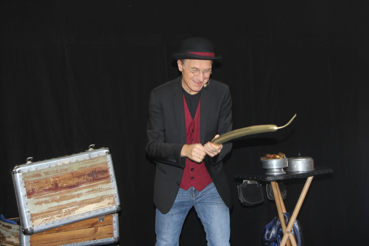 Was entsteht wohl aus dem Luftballon, den Zauberer Werner Link bei der Abschlussparty des Sommerleseclubs aufpustet?
