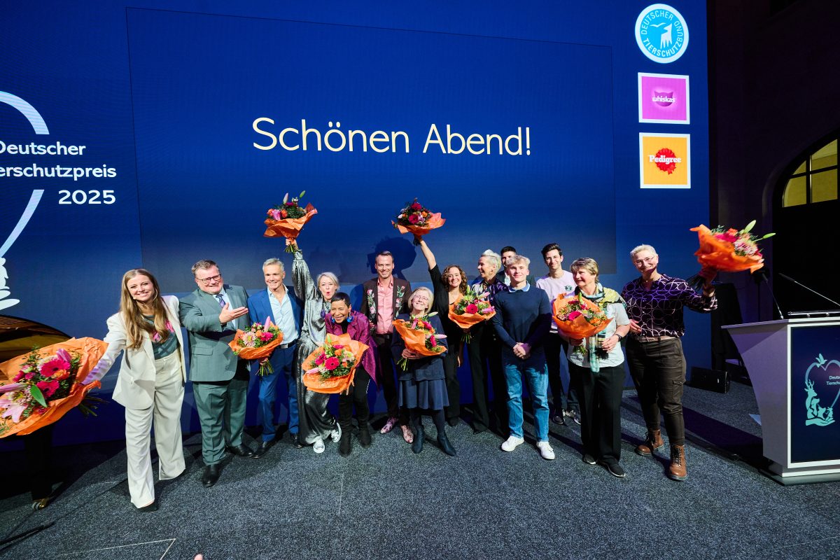 Insgesamt wurden fünf Vereine und Personen ausgezeichnet: Stimme der Tiere: Jannes Jaenicke, Lebenswerk: Dr. Christiane Haupt (Gesellschaft für Mauersegler), Nachwuchs: Nils Tetzlaff (Tierschutz Cuxhaven), Hauptpreis: Mirjam Cordt (Hilfe für Herdenschutzhunde) und Publikumspreis: Martina Zander (Wir retten Rehkitze e.V.). Die feierliche Preisverleihung wurde von Nina Eichinger moderiert, der Laudator für den Publikumspreis war Dr. Karim Montasser, bekannt aus Fernsehen und YouTube. Martina hatte fünf Minuten Zeit, um auf der Bühne vor rund 250 geladenen Gästen ihre Arbeit und Erfolge vorzustellen. Auch das im Herbst erschienene Buch „Wir retten Rehkitz“ fand großen Anklang – ein liebevoll gestaltetes Werk für Tier- und Naturfreunde jeden Alters. Weitere Infos, Fotos und die Möglichkeit zur Buchbestellung gibt es auf der Homepage www.wir-retten-rehkitze.com.