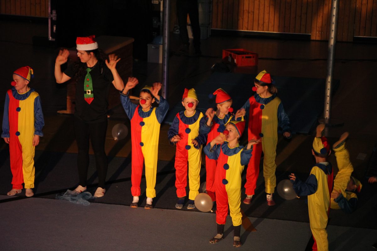 Turnen ist die größte Abteilung im Verein, die in einer großen Bandbreite Sportmöglichkeiten für jede Altersstufe und jedes Können anbietet. Die Jüngsten zeigten in einer Zirkusshow mit Clowns und Schneeflocken, was sie im vergangenen Jahr gelernt hatten, und mit Tanz und akrobatischen Elementen erzählten sie von Elsa, der Eiskönigin. Die Größeren begeisterten mit Übungen an Boden und Schwebebalken und einer rasanten Kasten-Boden-Gruppenvorführung. Dass Turnen nicht nur Kindern Freude bereitet, sondern auch später noch Spaß macht, bewiesen vier Mitglieder der Turngruppe für Erwachsene an den Ringen, am Reck, am Stufenbarren und – dies ließ sich der 1. Vorsitzende Paul Höfer nicht nehmen – am Barren.