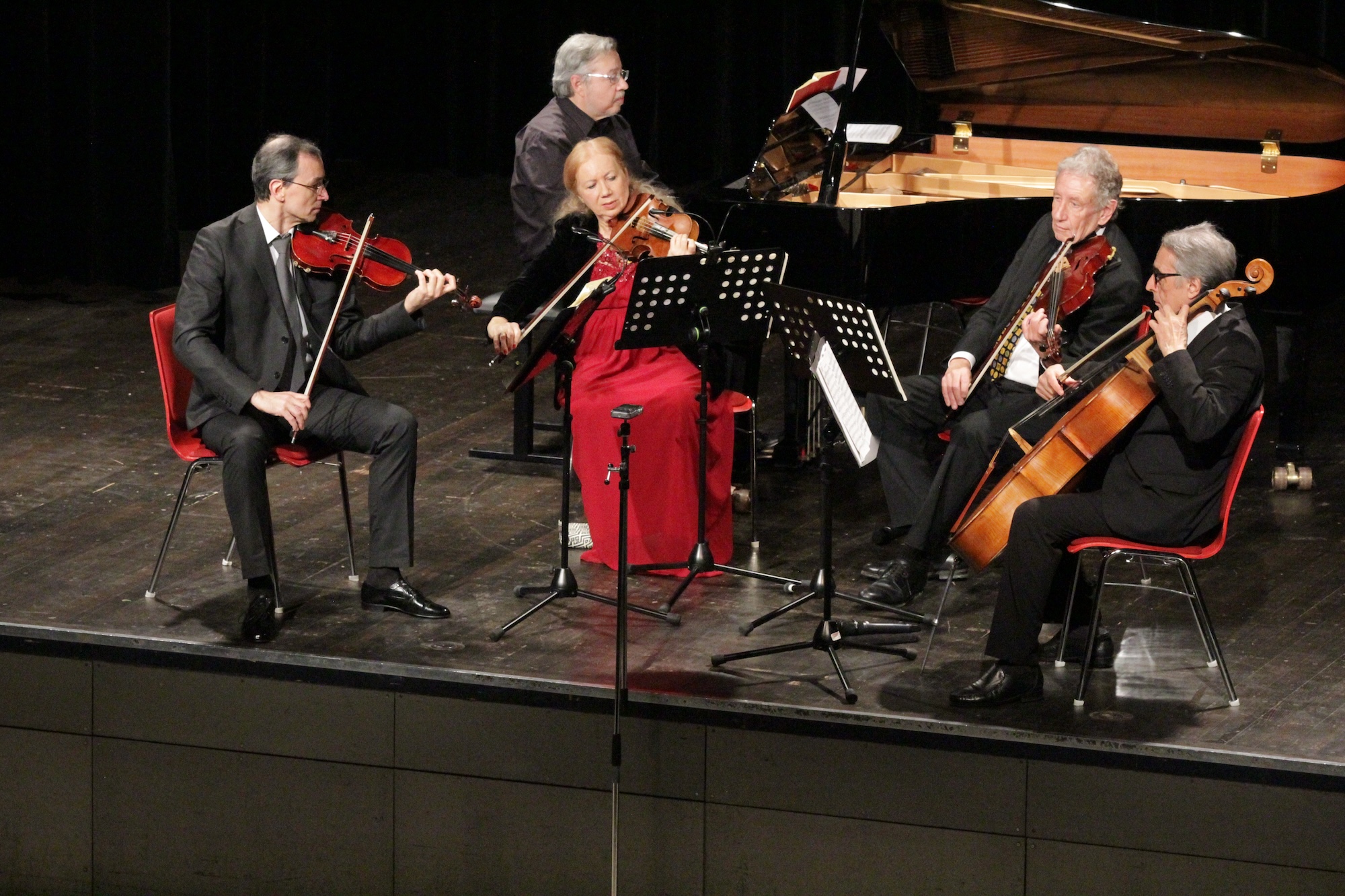 Neujahrskonzert in der Aula des OMG mit dem Friedensquartett Vladimir Genin als Solist am Flügel.