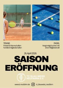 Alle wichtigen Termine – von Punktspielen über Tennis-Feriencamps bis hin zu Trainingsangeboten für Kinder und Erwachsene im Tennis- und Padelbereich – sind auf der Website www.tc-neufahrn.de sowie auf den Social-Media-Kanälen unter tc_blauweiss_neufahrn zu finden.