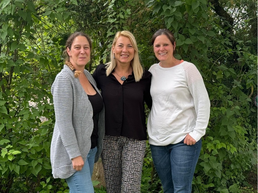 Die langjährigen, erfahrenen Betreuerinnen des Kinderparks Christina Mayer und Carmen Preuß. Sie bieten die Känguru-Gruppe an. Martina Büscher ist Erzieherin und betreut die Schmetterling-Gruppe.