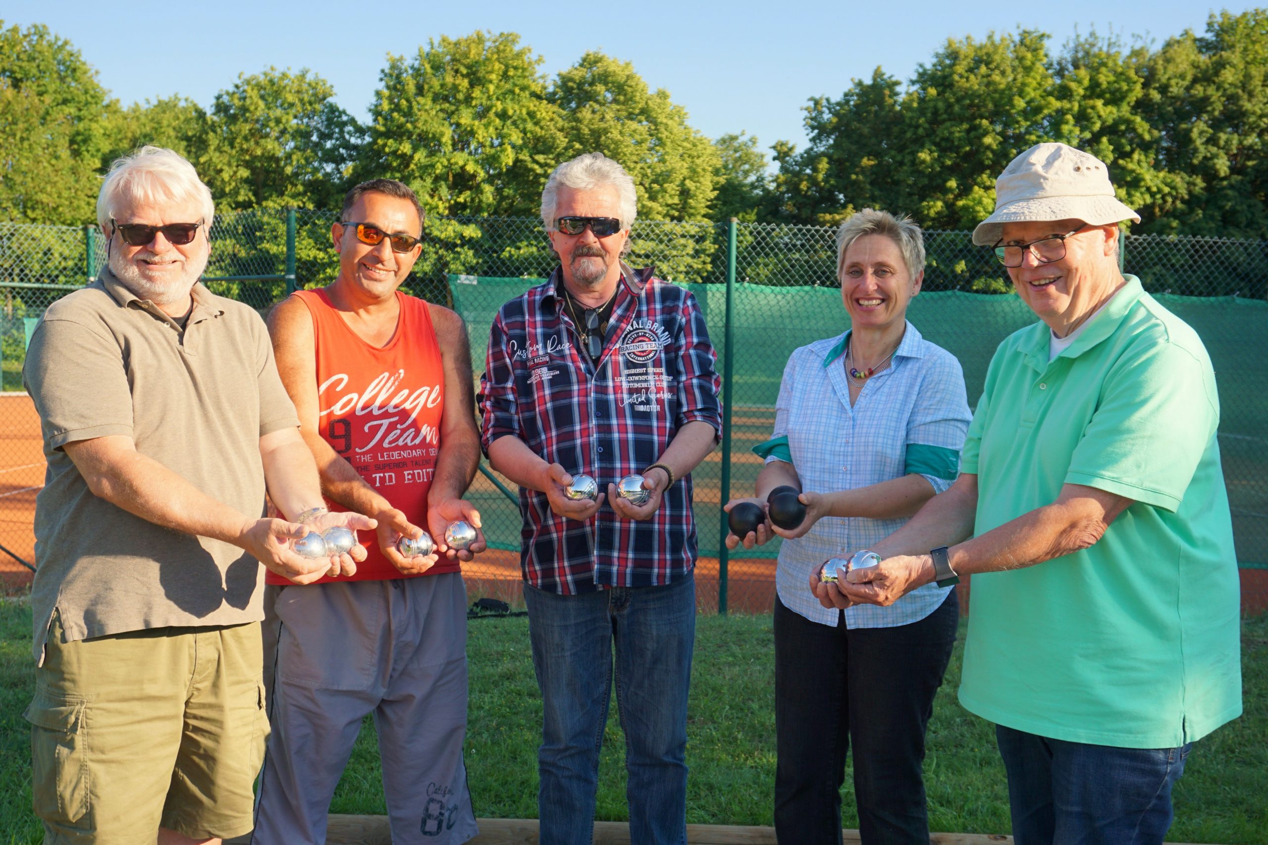 Boule bringt Menschen zusammen: Lothar Brück (re.) spielt mit Johannes Buhl (li)., Stefanie Wölfer (2.v.re.) und (noch) Fremden zusammen. Die nächste Partie ist schon beschlossen.