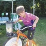 Nicht nur der Marktplatz bot viele Möglichkeiten, sondern auch die Hagl-Wiese. Dort konnten sich junge Sportler am Stand der AOK auf dem Fahrrad mit Muskelkraft ihren eigenen Smoothie erstrampeln. Und wer sich richtig austoben wollte, sprang auf einer der beiden Hüpfburgen herum.