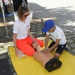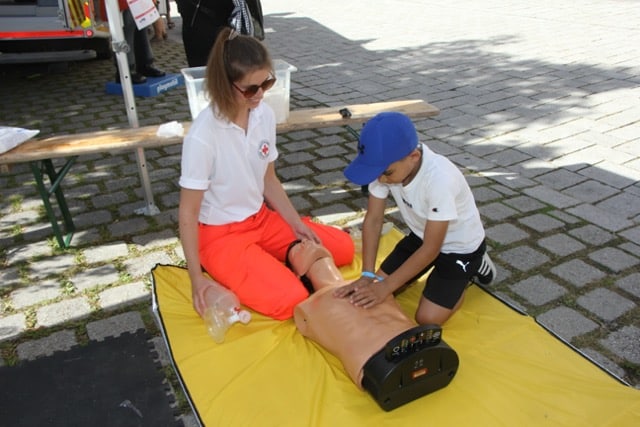 Wie geht die Herzdruckmassage, wie sieht ein Rettungswagen von innen aus, was ist ein EKG? Das Team des BRK erklärte und zeigte alles und beantwortete geduldig sämtliche Fragen.