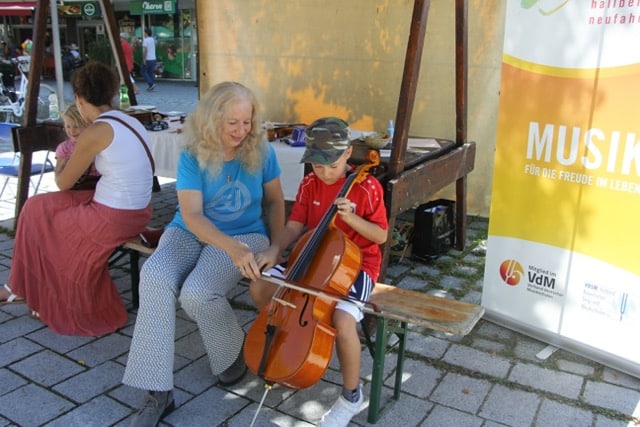 Auf der Bahnhofstraße zwischen Kirche und Rathaus konnte sich der Tennis-Nachwuchs erproben, der ADFC bot einen Radl-Parcours und die Polizei Neufahrn informierte nicht nur, sondern half auch dabei, Helm und Fahrrad richtig einzustellen. Auf dem Marktplatz gab es so viele Stände, dass man sie gar nicht einzeln aufzählen kann. Die „Kochenden Papas“ boten Chili sin Carne an. Kinderkrippen, Kindergärten und Hort luden zum Basteln ein und bei den Grundschulen durften die Mädels und Jungs ihre eigene Stofftasche bemalen. Lehrkräfte der Musikschule Hallbergmoos-Neufahrn hatten Instrumente zum Ausprobieren an ihrem Stand.